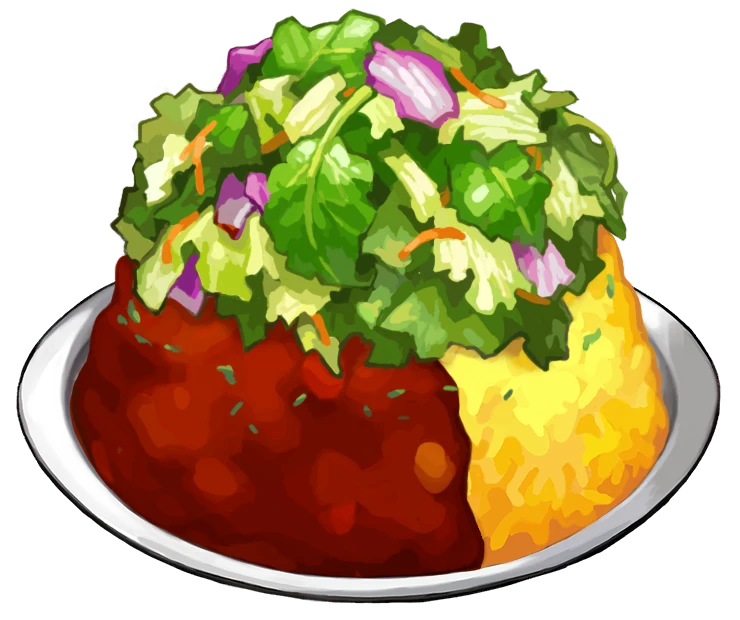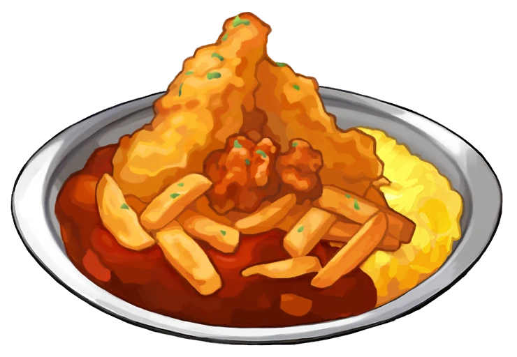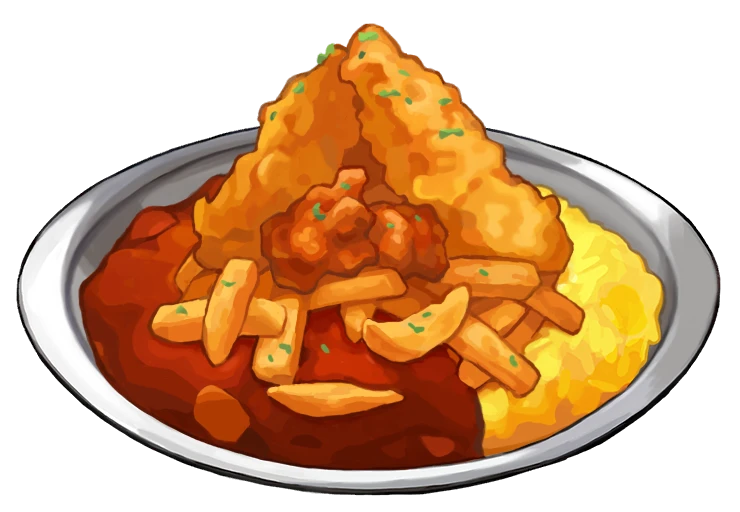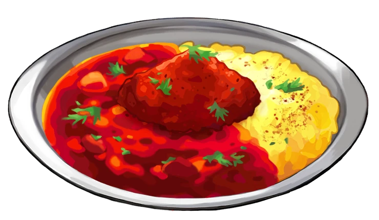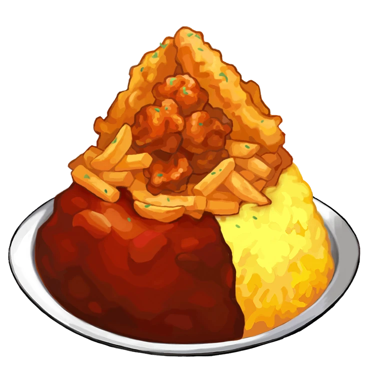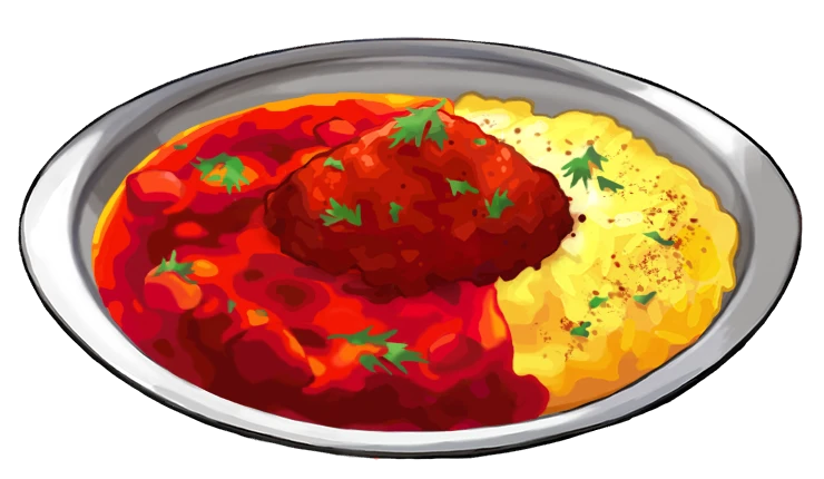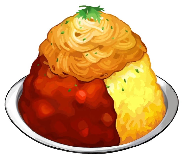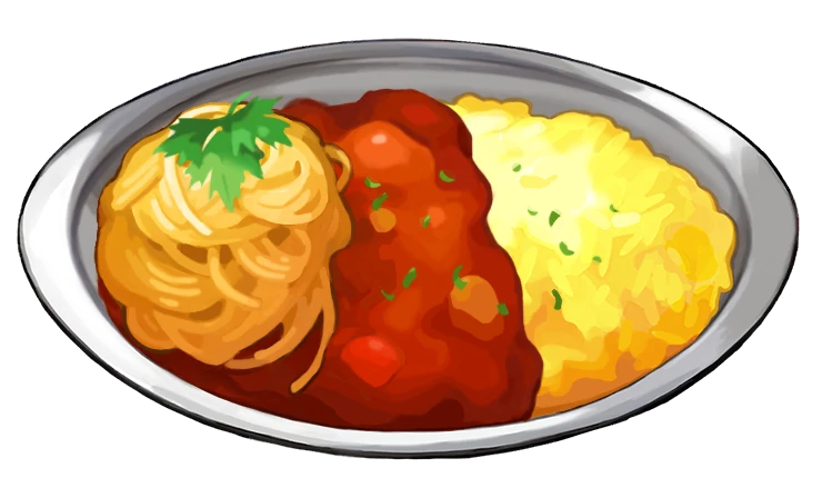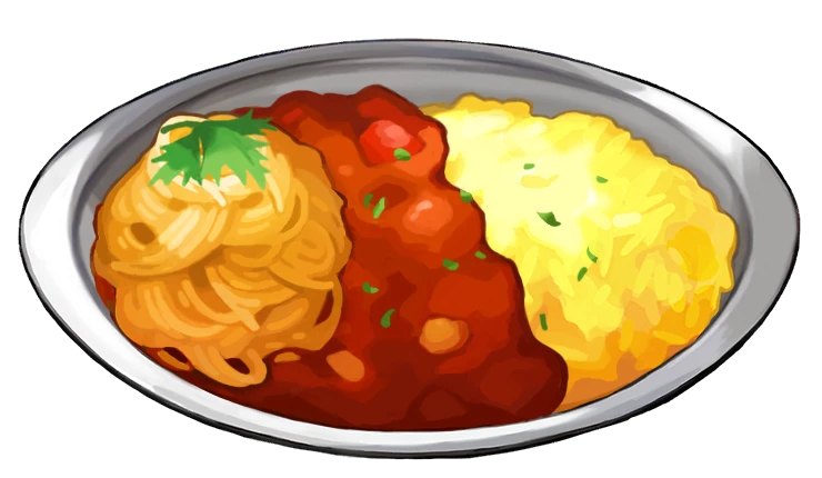 A dish where one can enjoy curry with rice and curry with pasta all at the same time. Best to eat it when you’re feeling really hungry.