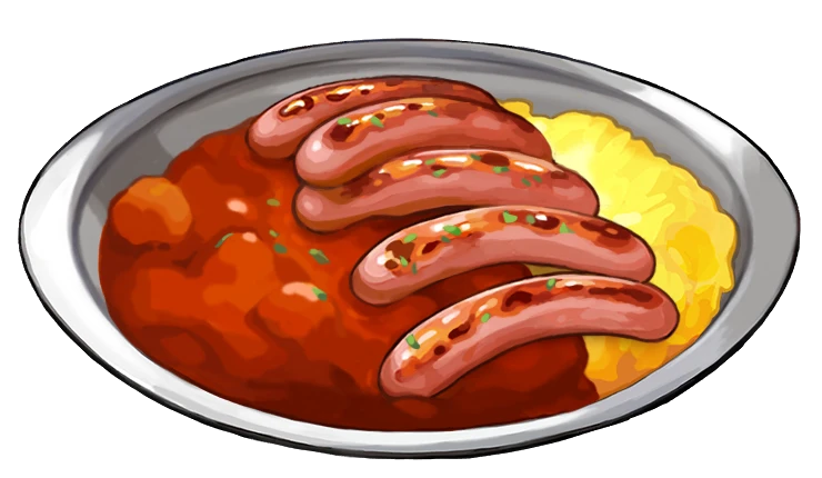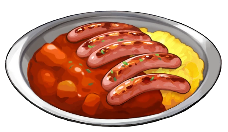 The striking acidic taste of the curry roux and the rich umami of the sausage really stimulate the appetite.