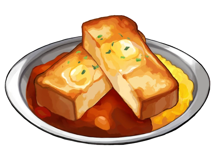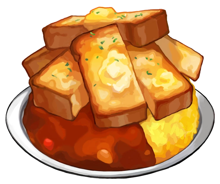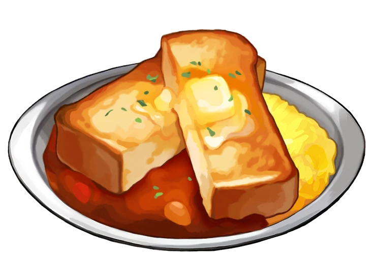A dish where the flavor of the well-browned and roasted toast makes for a mysterious match with the bitter curry roux.