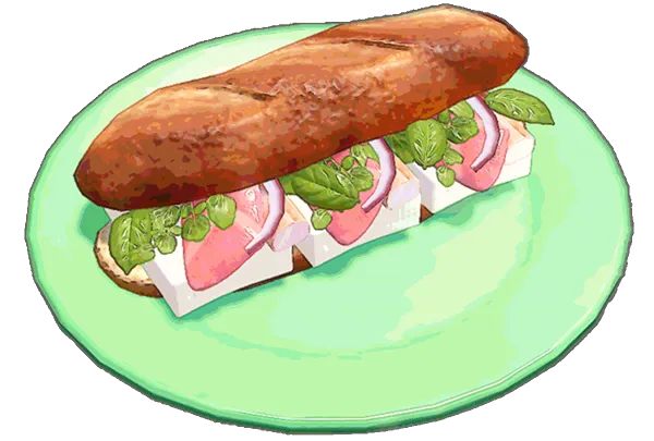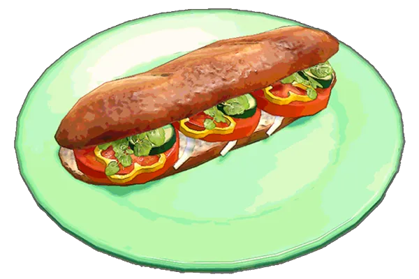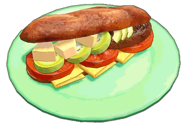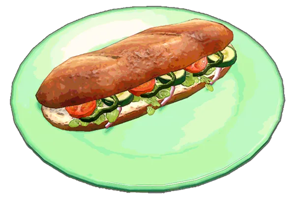 A juicy, vegetable-laden sandwich. The fresher the veggies, the tastier the dish.